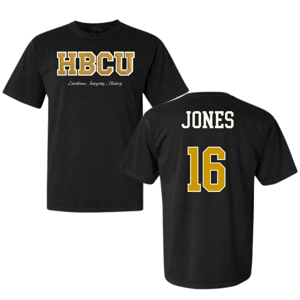 Alabama State University Volleyball (W) Black HBCU Varsity Comfort Colors Tee - #16 Essence Jones