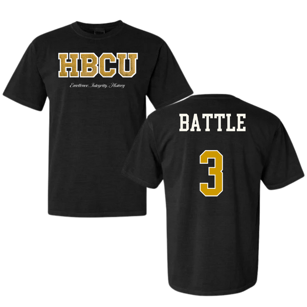 Alabama State University Volleyball (W) Black HBCU Varsity Comfort Colors Tee - #3 Norielle Battle
