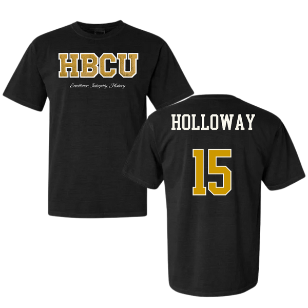 Alabama State University Volleyball (W) Black HBCU Varsity Comfort Colors Tee - #15 Camille Holloway