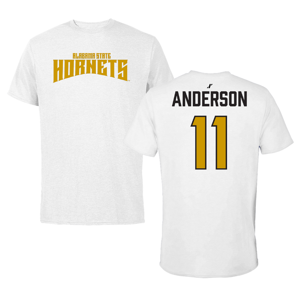 Alabama State University Volleyball (W) White Classic Performance Tee - #11 Zoey Anderson