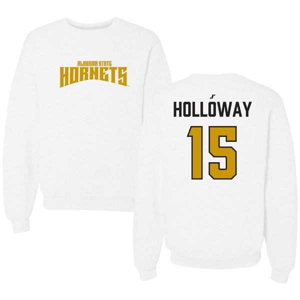 Alabama State University Volleyball (W) White Classic Crewneck - #15 Camille Holloway