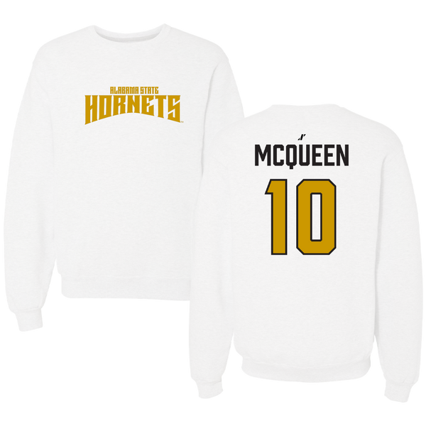 Alabama State University Volleyball (W) White Classic Crewneck - #10 Madisynne McQueen