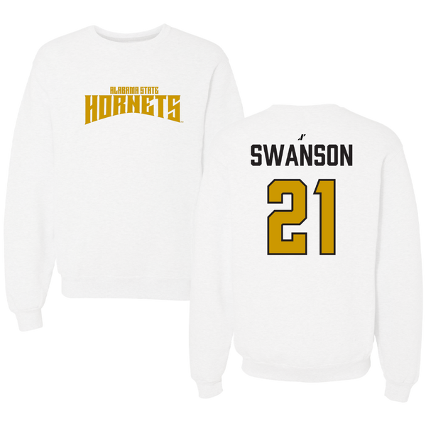 Alabama State University Volleyball (W) White Classic Crewneck - #21 Breanna Swanson